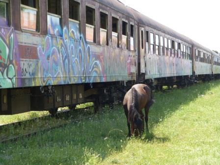 Die Eisenbahn ist, wie die Fotos deutlich beweisen, so gut wie auf dem Abstellgleis angelangt! Das wundert nicht, wenn für eine Strecke von 16 Kilometern zwei Stunden benötigt werden. Das macht der in Albanien eingesetzte „Minibus“ in erheblich kürzerer Zeit.