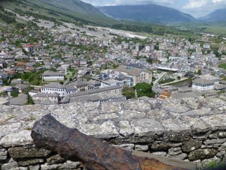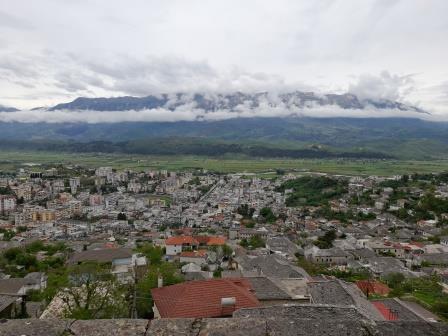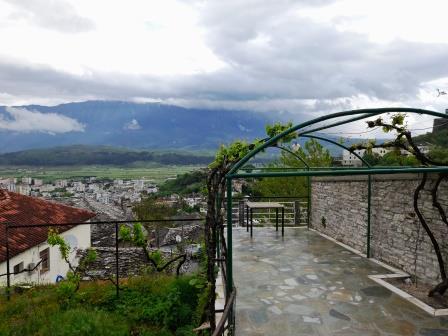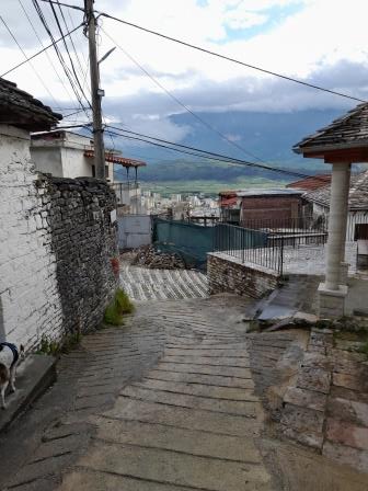 Auf den Dächern der Häuser finden sich große Steinplatten, die nicht befestigt werden müssen, die halten sich durchs Eigengewicht. Diese Platten hielten mit dem Gemäuer zusammen die Temperaturen im Sommer kühl. Über den Winter wird sich nicht geäußert. Gjirokastra ist Weltkulturerbe!