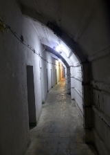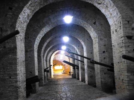 Ein Stück weiter links gibt es eine Treppe die in einen Teil der ehemaligen Verliese führt. Hier ist eine Taschenlampe sinnvoll, wie auch eine gute Jacke, denn es ist sehr dunkel, kühl und feucht. Wer hier eingekerkert war, der war es wirklich.
