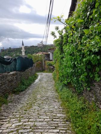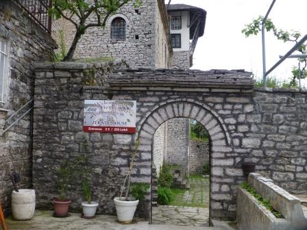 Im Navi stellten wir die Straße des Appartements an unserem Zielort Gjirokastra ein und diesem folgten wir dann, bis wir in einem Parkhaus endeten. Obwohl laut Navi die Straße dort weitergeht. Sie ist übrigens erst seit 4 Jahren gesperrt! Zwei weitere Ansätze, die jede Stadtrundfahrt blass aussehen ließen, sie führten durch enge, kopfsteingepflasterte Straßen, natürlich mit Gegenverkehr, rückwärts fahren und allem was dazugehört, gaben wir es auf und fuhren wieder zurück ins Parkhaus. Dort stellten wir fest, dass unser Gastgeber uns eine Wegbeschreibung geschickt hatte, der wir nun folgten. Wir entdeckten nochmals neue enge Straßen, die uns dann zum Ziel führten.