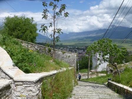 Gjirokastra wird als die Stadt der Steine und Steigungen bezeichnet. Es ist nicht unbedingt etwas für untrainierte, denn es geht nicht einfach nur rauf und runter, nein, das Ganze ist auch noch Steil dabei! Manch Trunkenbold, der sich bei uns in der Gosse wiederfinden würde, wacht hier auf dem Dach eines tiefer liegenden Hauses auf!