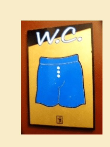Bilder: Der Ofen stand nicht im Musum sondern in der Bar, wo auch diese originellen Toilettenbeschriftungen zu sehen sind.