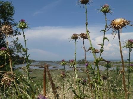 Wer den Nationalpark Divjaka-Karavasta besuchen möchte, sollte nicht fußkrank sein. Denn die Laguna e Karavastasë, ein Brutplatz für Krauskopfpelikane, ist mit dem Auto kaum zu erreichen. Wir vertrauten unserer Karte und dachten, es gäbe eine nahe dem Ufer folgende Straße. Es stellte sich heraus, dass es sich um eine Sandpiste handelte. Nachdem die Löcher immer größer und die Personen im Auto immer mehr durchgeschüttelt wurden, stellten wir das Auto in den Schatten und gingen zu Fuß weiter. Schließlich kamen wir an die Ausläufer der Lagune, ohne einen Pelikan zu sehen. Plötzlich Fahrgeräusche, es näherten sich zwei Land Rover, die junge Menschen durch den Nationalpark fuhren.