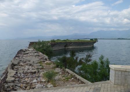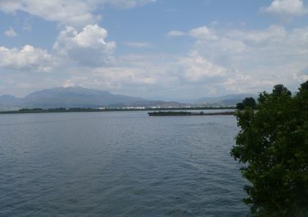 Wir erreichen viel zu schnell Shkodra und hatten noch einige Stunden Zeit bis zum Einchecken in unsere neue Ferienwohnung. Wir sahen auf der Karte eine Straße zur anderen Seite des Skadar-Sees und folgten dem Abfluss des Sees, der Buna, damit wir am Ufer ein wenig den See entlang spazieren können.