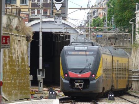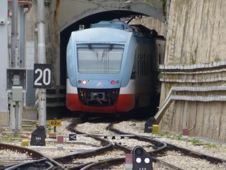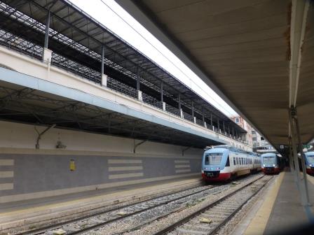 Ist der Hauptteil ein Durchgangsbahnhof, enden die beiden anderen Bahnhöfe hier. Vor dem Bahnhof fand ich zwei nicht mehr genutzte Oberleitungsmasten von O-Bussen vor. Das verleitete mich dazu, etwas genauer in der Umgebung des Bahnhofes nachzusehen. Es hängen tatsächlich noch Oberleitungen in den Straßen, obwohl der O-Bus Betrieb in Bari Mitte der 1980er Jahre eingestellt wurde. Es kann damit zusammenhängen, dass immer mal wieder eine Initiative zur „Wiedereinführung“ des O-Busses gestartet wird.