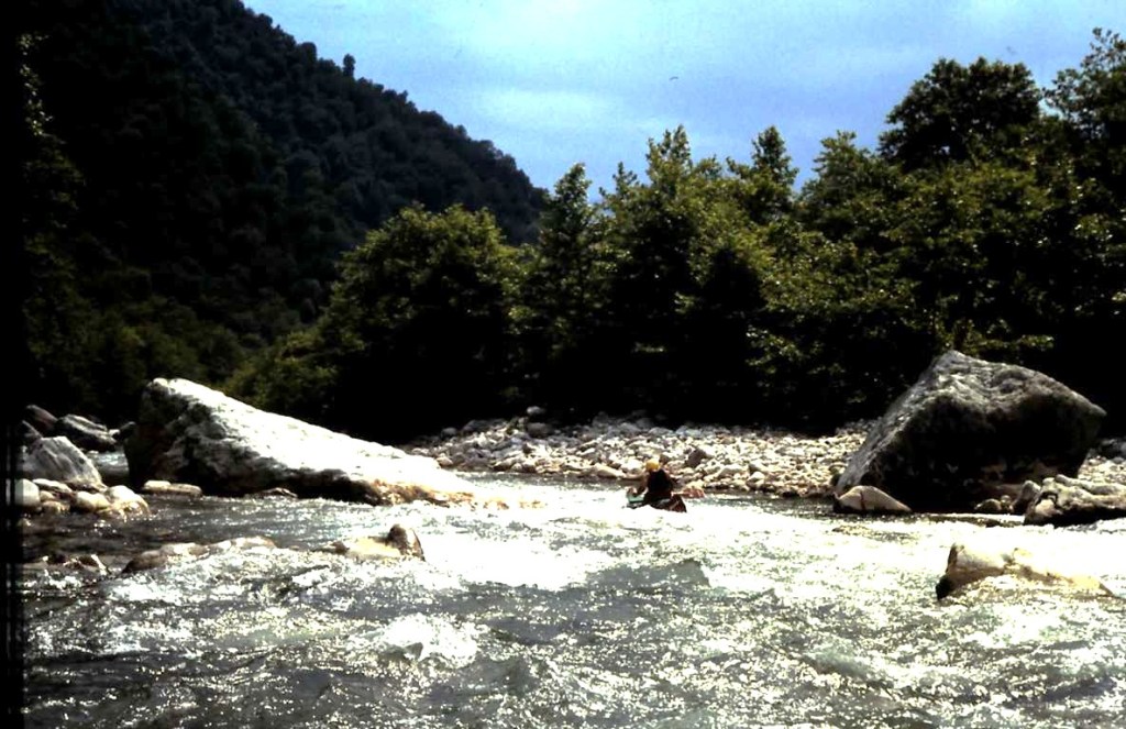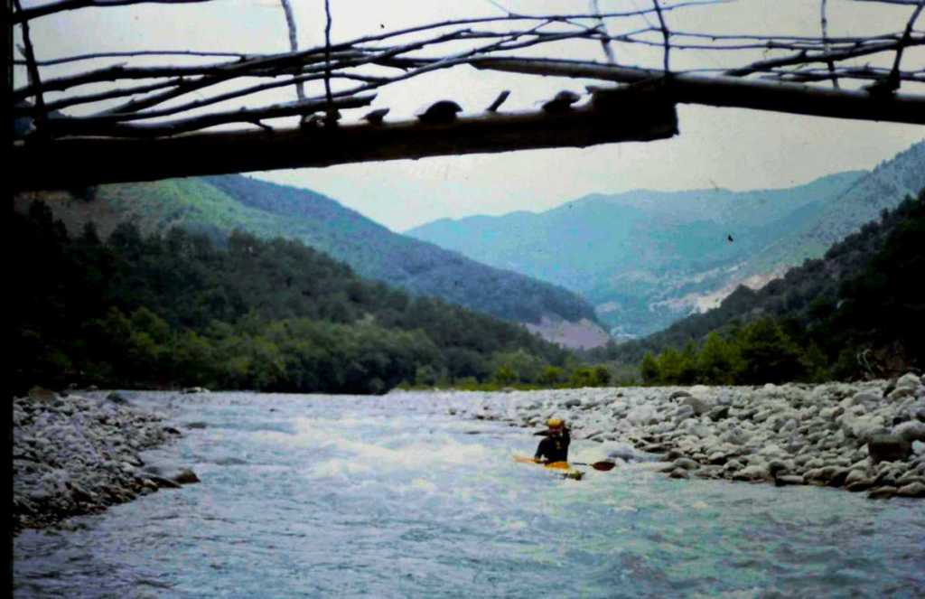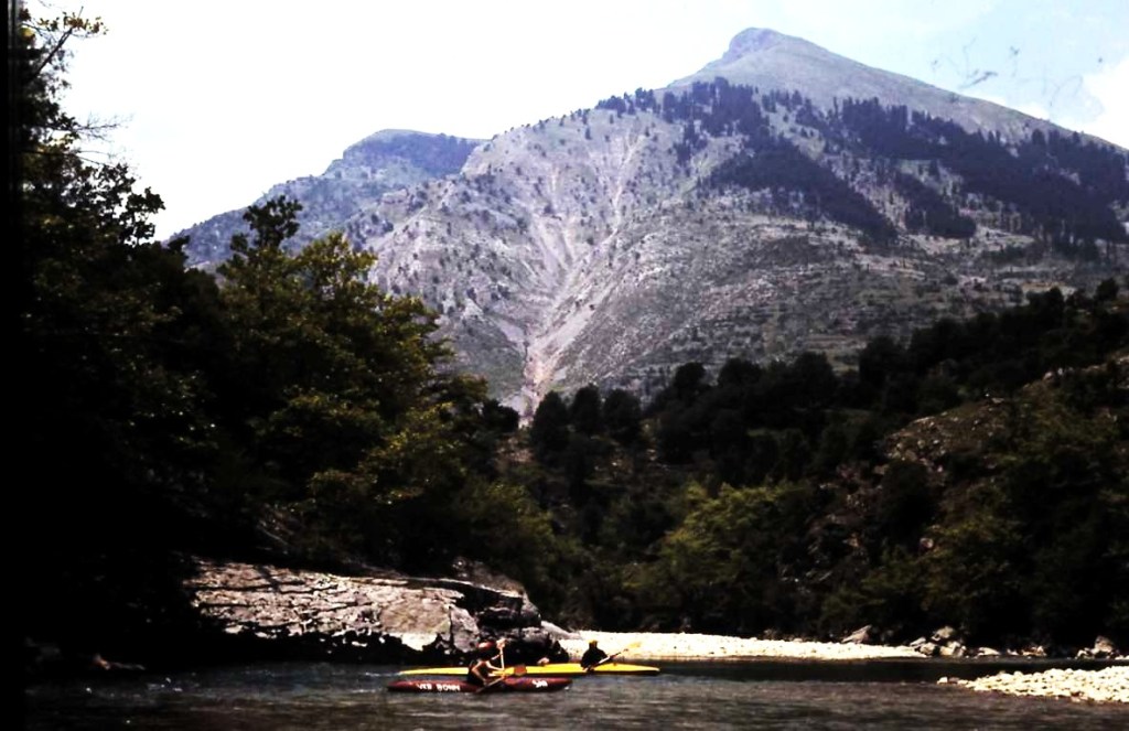 Der von mir in einem alten Paddelführer auserkorene Fluss war der Acheloos, beschrieben als schöner, einsamer Wanderfluss. Hier kamen wir nach ca. einem Monat Anreise mit vielen schönen Plätzen, auf denen wir länger verweilten, an. Dann erst mal eine Kneipe gesucht, von der aus wir telefonieren konnten, was tatsächlich funktionierte. Dort verabredeten wir uns für 2 Tage später mit unseren Kumpels.