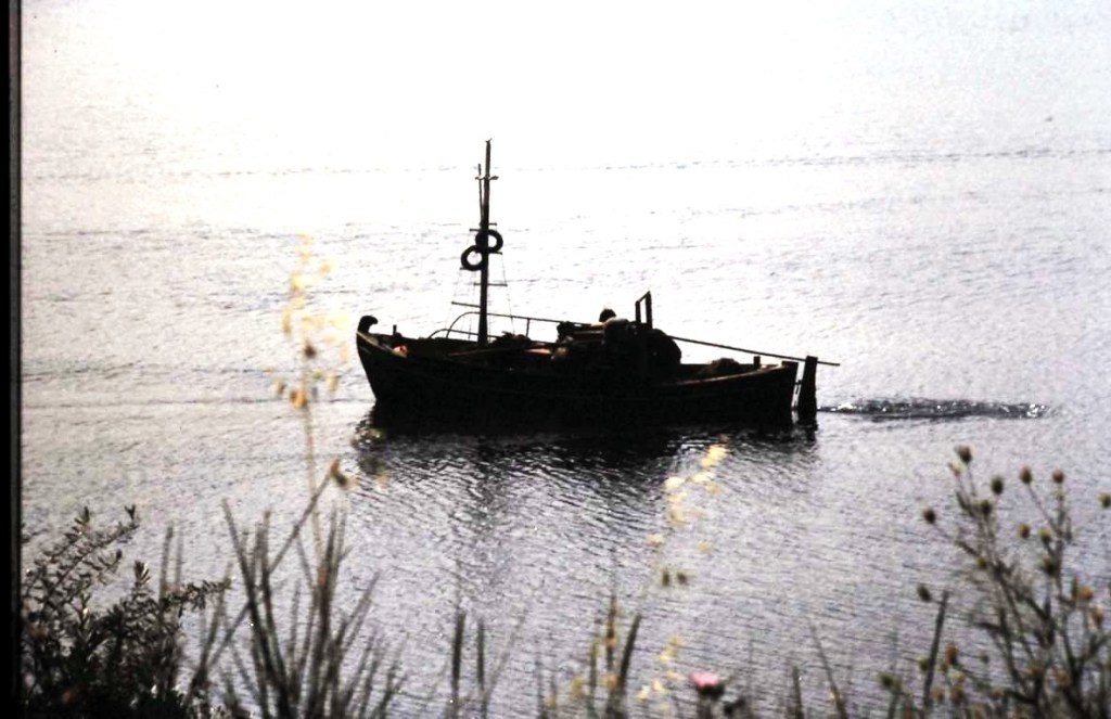 Abends wurden wir zur Dorffeier eingeladen, wo auch unser Hotelbesitzer anwesend war, dem wir dann erklärten, warum das alles so geschehen ist, und bedauerten gemeinsam diese nicht mehr heilige, böse westliche Welt. Übrigens, bei uns in Deutschland rollte damals die unheimliche Gyros Welle; wenn man dort, im Inland, Gyros bestellte, erntete man verständnislose Blicke. Dort wurde die die Kühlkammer geöffnet und brachte Spieße aller Art, Leber, Nieren und was noch alles heraus, legte es auf den Grill. Zu später Stunde haben wir uns dann, ganz schön vom Alkohol benebelt, verabschiedet, aber der Weg sei zu gefährlich im Dunkeln für uns, einer der Männer begleitete uns zu den Zelten, wer nun wirklich besoffener war möchte ich nicht entscheiden, er machte den Weg, trank bei uns am Zelt noch den einen oder anderen Ouzo und verschwand irgendwann im Dunkeln. Ab und zu vernahmen wir aus der Dunkelheit eine Stimme: „Oh, OUZO, PIVO, ohhhhhhhhh….“!