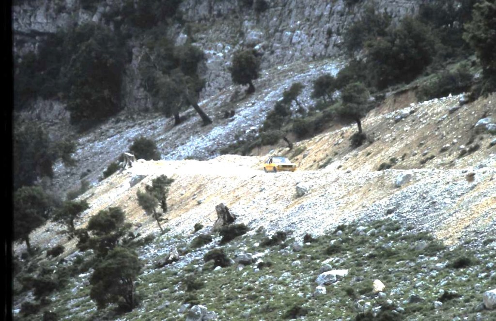 Am Ziel unserer Reise angekommen, bestand unsere Aufgabe darin, die Autos zur Aussatzstelle zu bringen, was wir mit Hilfe eines Linienbusses zu tun gedachten. Damit hier keine Irrtümer auftreten, der fuhr nicht mehrmals am Tag, sondern mehrmals in der Woche, so gegen irgendwann, also, warten. Aber er kam, und so fuhren wir los. Ich kenne nicht mehr den Grund, aber in einem Dorf hatten die Bewohner eine Straßensperre eingerichtet, und alles Verhandeln von Seiten des Busfahrers verlief negativ, der Bus wurde nicht durchgelassen. Nach kurzem Abchecken, wer wohin wollte, drehte der Bus und er brachte uns auf ausgesprochen abenteuerlicher Strecke zum Ziel. Tröstend waren die Worte eines wiederum deutschsprechenden Griechen: Ja, die Busfahrer hier sind wahre Könner, da muss man keine Angst haben. Vor kurzem haben bei einem Bus die Bremsen versagt, da hat er ihn in eine Felswand gesetzt, leider hat eine Frau die Nerven verloren und ist abgesprungen, sie ist leider getötet worden.