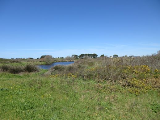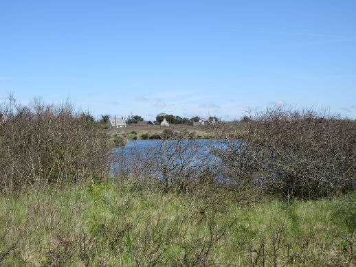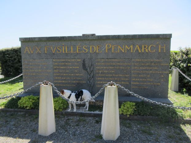 Nach knapp einundeinhalb Kilometern befindet sich versteckt das Monument aux Fusillés de Penmarc’h. (Denkmal für die Erschossenen von Penmarc’h). Hier wurden am 21. April 1944 und Anfang Mai 1944 von der deutschen Armee fünfunddreißig Widerstandskämpfer in der Düne Poulguen in Penmarch erschossen und einfach im Sande verscharrt. Was die Nazis hier in der Gegend angerichtet haben bewegt einen nachhaltig.