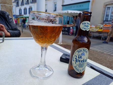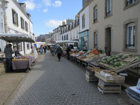 Den Plage de la Grève Blanche passierend erreichen wir Men Meur, eine in den Atlantik reichende Felsnase. Den Wegen folgend erreichen wir die Hafeneinfahrt von Le Guilvinec und somit deren Zentrum. Dort ist Sonntags Markt.