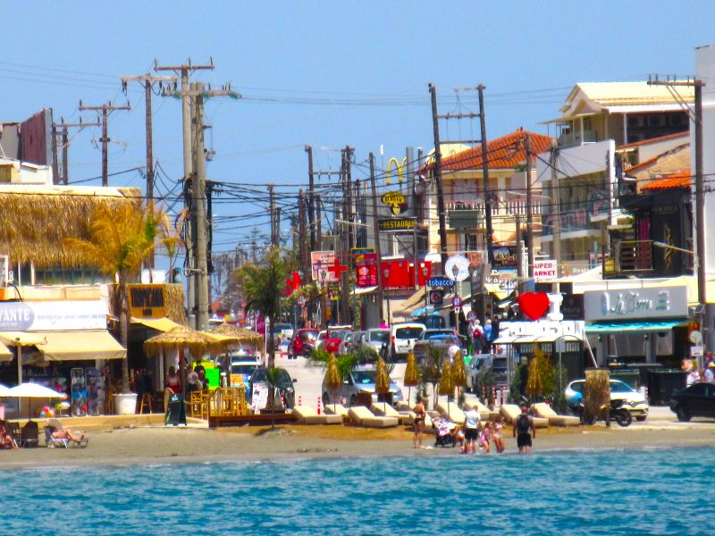 Die Masse von Touristen hinterlässt nicht nur Tonnen von Müll und verursacht eine massive Wasserknappheit, besonders durch Swimming-Pools, die sich wenige Meter vom Meer befinden. Sie bedrohen auch die Bestände der Caretta-Caretta Schildkröte, deren Eiablageplätze sich meist an den Südstränden von Zakynthos befinden. Obwohl es sich um einen Meeres–Nationalpark handelt, stehen hier Liegen und Sonnenschirme herum, die sonnenhungrige Badende anlocken sollen und tun.