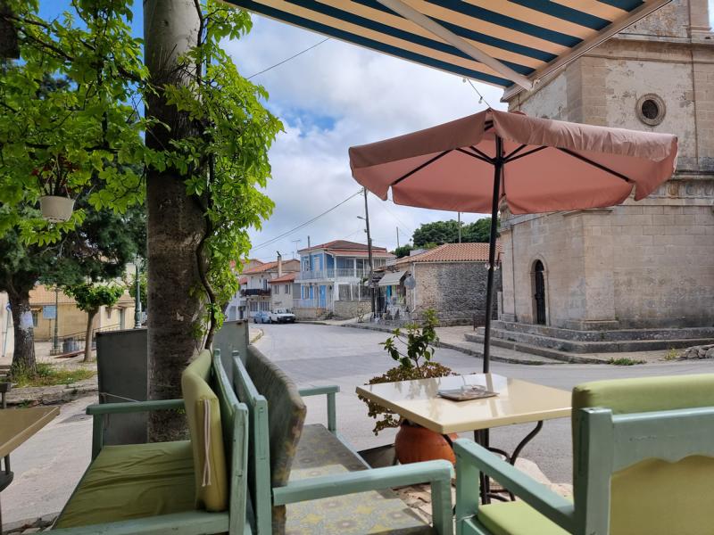 Wir bleiben in den Bergen und finden auf dem Dorfplatz ein Café, eine Taverne und einen Minimarkt.
