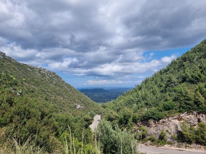 Wir fahren in das Vrachíonas-Massiv mit dem 756 Meter hohen Berg Vouni und seinem Nachbarberg Líva mit 737 Metern.