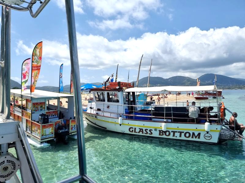 Viele Bootsunternehmer preisen hier ihre Leistungen mit Glasboden- oder Speedbooten an. Da die Buchung stand, begannen wir die Suche nach unserem Boot, der Mamma Mia der Abba Tours Zante. Na, merkt ihr was?