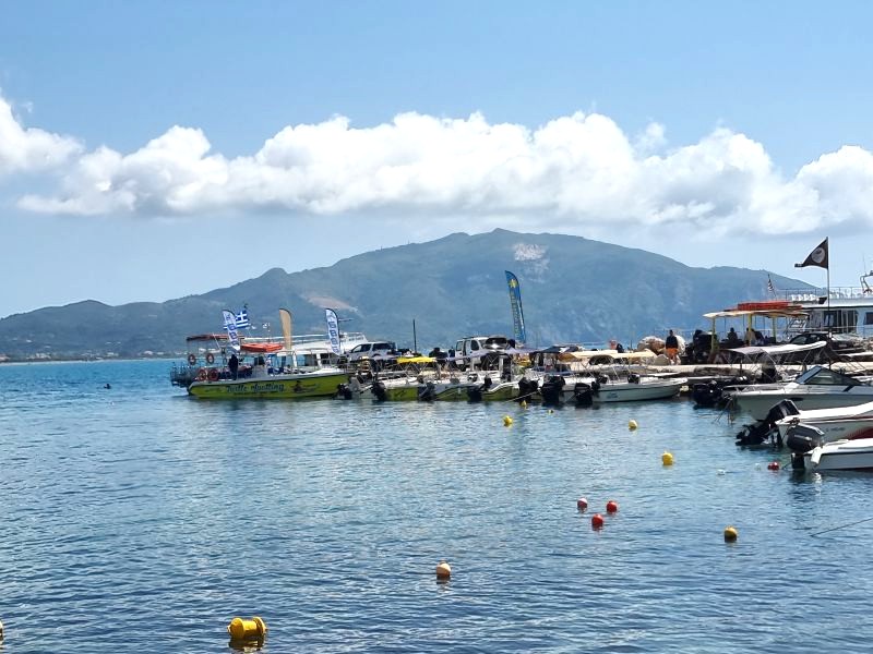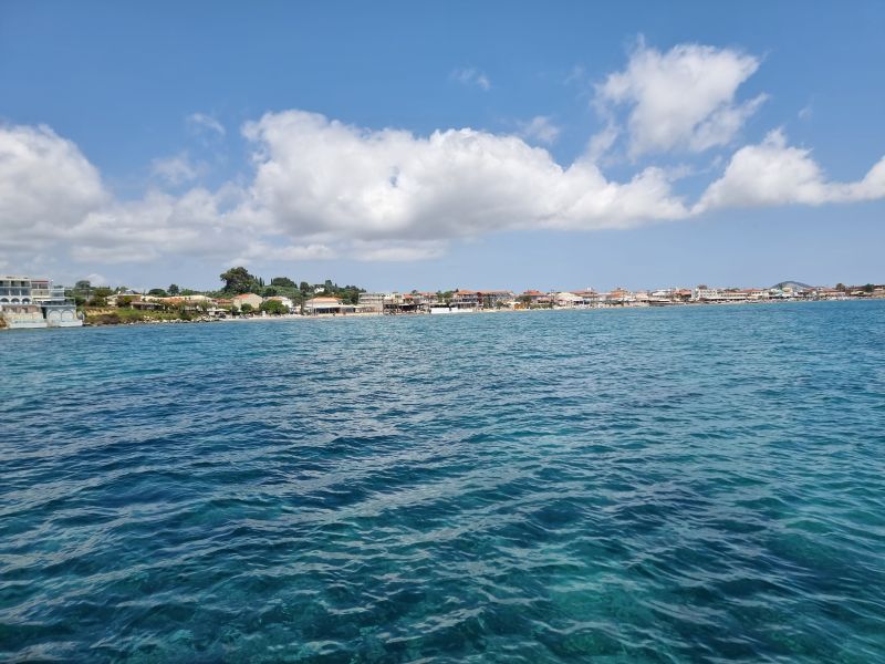 Die Bootsfahrt führte uns erst einmal an der Küste vorbei, um den „schönen“ Touristenort Laganas von der Wasserseite aus zu sehen.