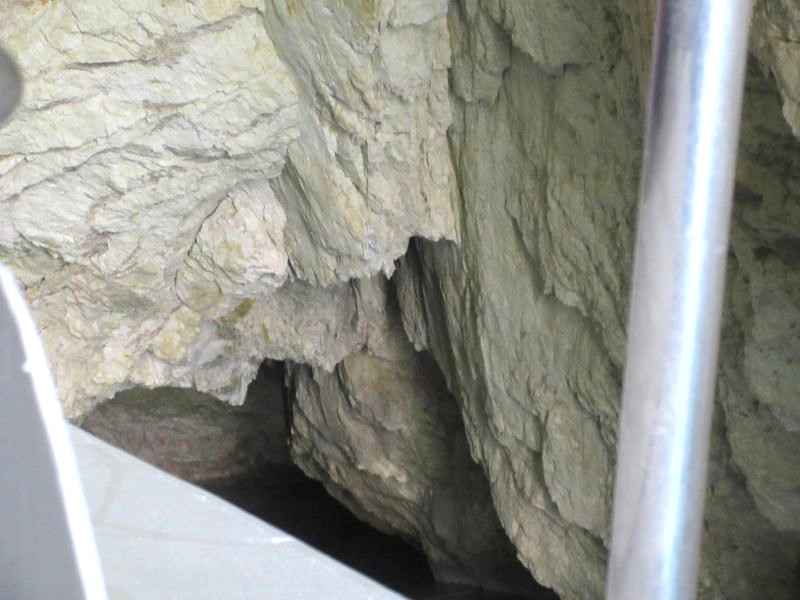 Nachdem dieses Theater zwei bis dreimal wiederholt wurde, einmal haben wir dann auch auf unserer Seite eine Schildkröte vermuten können, fuhren wir tatsächlich an der Steilküste vorbei zu diversen Höhlen, die unser Kapitän mit größter Geschicklichkeit durchfuhr. Entweder es passt in der Breite oder in der Höhe so gerade.