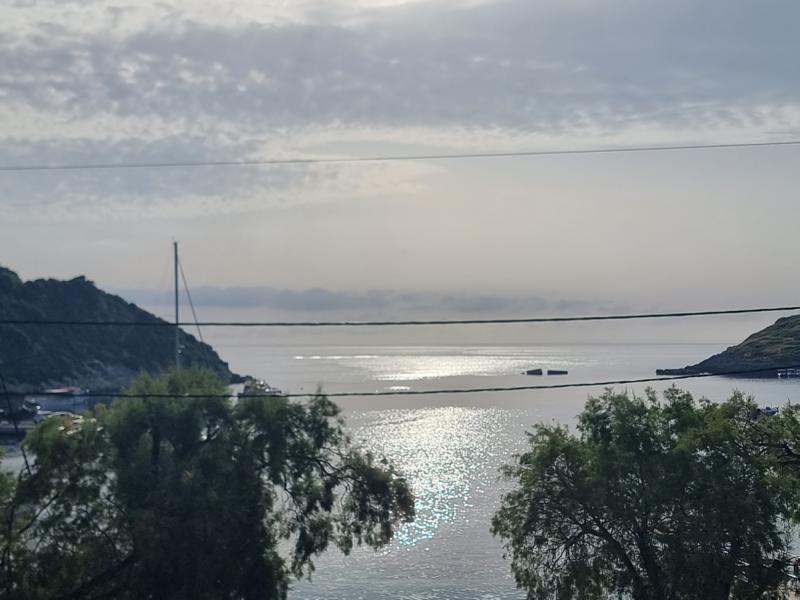 Das stimmte so gottseidank nicht, die nächste Taverne namens Stou Tsagkari war 200 Meter weit weg. Der Mini-Markt Panorama mit schönem Blick in die Bucht befand sich jedoch im nächsten Ort. Dieser befindet sich Luftlinie ein Kilometer von unserem Domizil entfernt, auf der Straße waren es jedoch fünf Kilometer.
