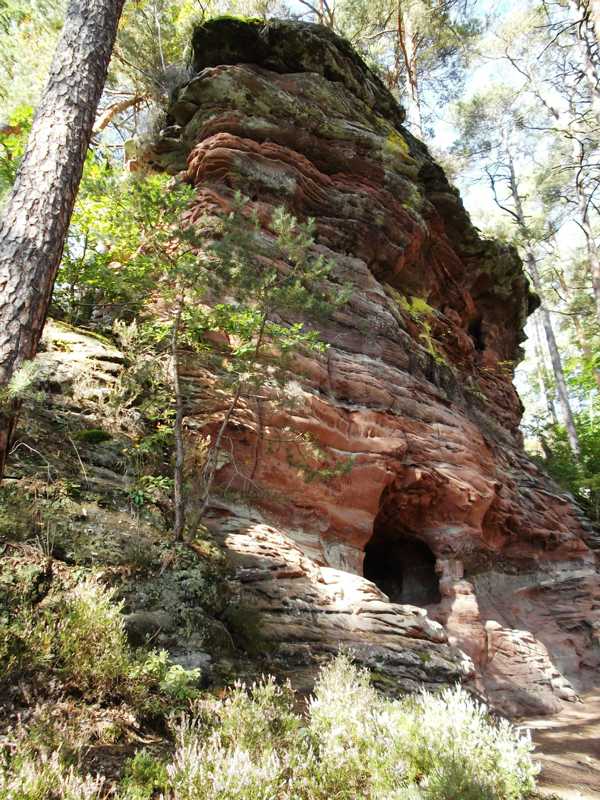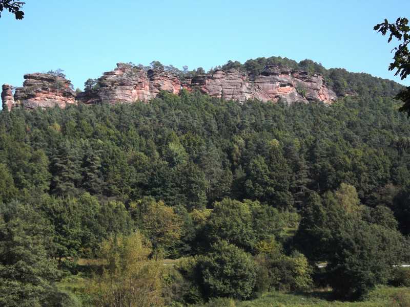 Und so ging ich recht naiv die erste Fahrradtour an, die „Raubrittertour“, 40 Km Strecke, kein Problem. Von Dahn erst mal nach Reichenbach, dann auf den Radweg eingeklinkt. Oh, es ging doch mehr rauf und runter als geplant, der Wasservorrat ging schnell dem Ende zu, konnte aber ersetzt werden. Über einen Abstecher zum Drachenfels, nee, nicht Hollands höchstem Berg, aber auch hoch, kam ich bis zur Burg Berwartstein. Hier zahlte sich dann der im Vorfeld getätigte Kauf einer guten Wanderkarte aus , denn so konnte ich meinen Rückweg nach Dahn gut abkürzen.