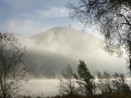 Der Nebel lichtet sich. Der Drachenfels wird frei gepustet