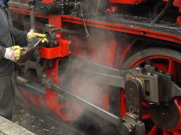 Das Ölkännchen ist eins der wichtigsten Werkzeuge des Lokpersonals. Hier beim Kuckucksbähnel in der Pfalz. Mehr hier.