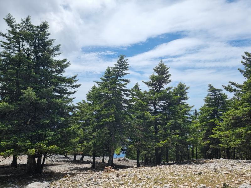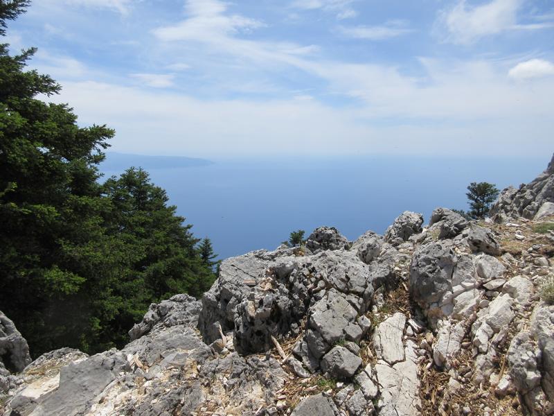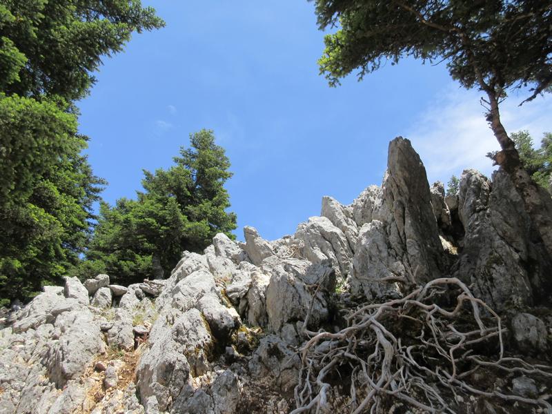 Wir haben gute Voraussetzungen für eine Erkundung des Berges Énos, denn die Wolken schieben sich immer wieder vor die Sonne. Diese wird nicht permanent auf unsere Häupter brennen.