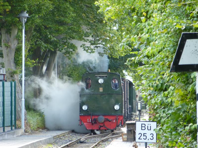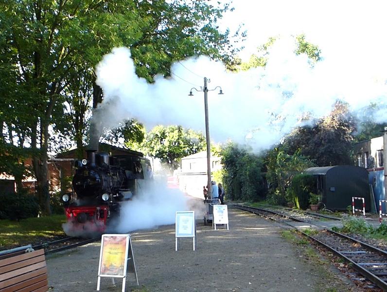 Die Abfahrt des ersten Personenzuges mit der Lok 20 (Haspe) fotografierte ich aus sicherer Position mit Blick auf den Bahnhof.