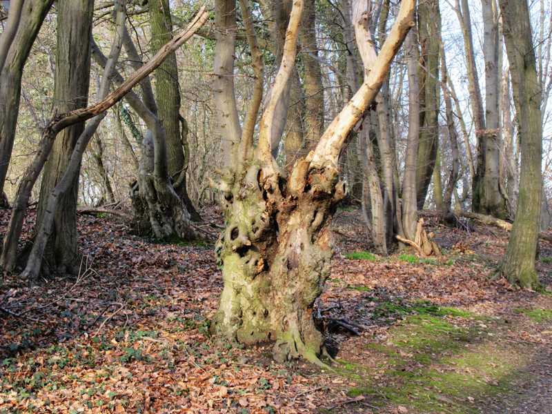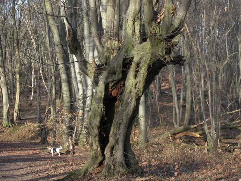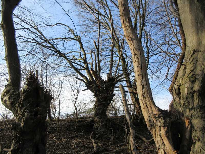 Hinter dem Friedhof geht es rechts ab, vorbei an der Friedhofskapelle bis zum Wald. Dort biegt ihr links in den Weg, der am Waldrand vorbei führt, hier gibt es bizarre Baumansichten.