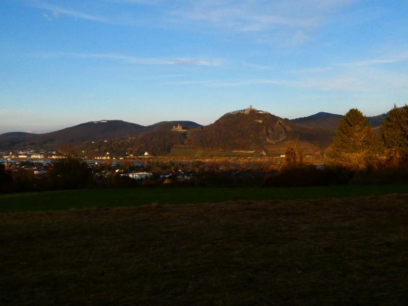 Wir kennen den Blick vom Rolandsbogen schon und bewegen uns weiter auf der Fahrstraße, die übrigens wenig befahren ist.