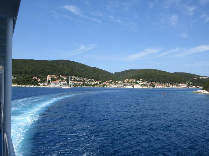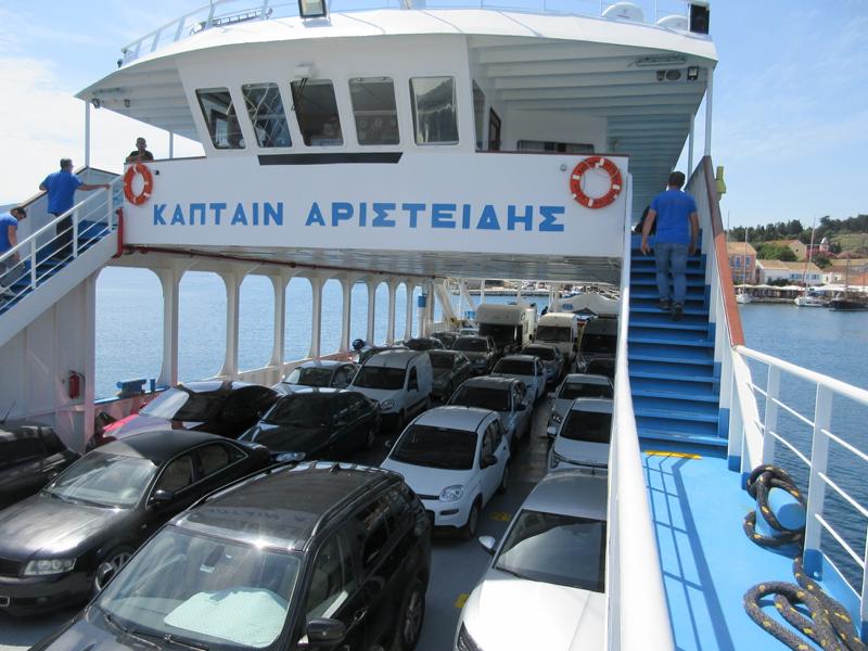 Und siehe da, Fähre erreicht Fiskardo, wird entladen und beladen, und pünktlich ertönt das Schiffshorn zur Abfahrt.