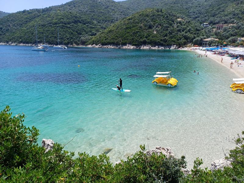 Wir wechseln heute zur dritten und letzten Insel unseres Urlaubes. Lefkada oder auch Lefkas ist die einzige Insel, die vom Festland ohne Fähre erreicht werden kann, denn die 100 Meter Wasser werden durch eine bewegliche Brücke überwunden. Die Insel ist 30 Kilometer lang und 12 Kilometer breit.
