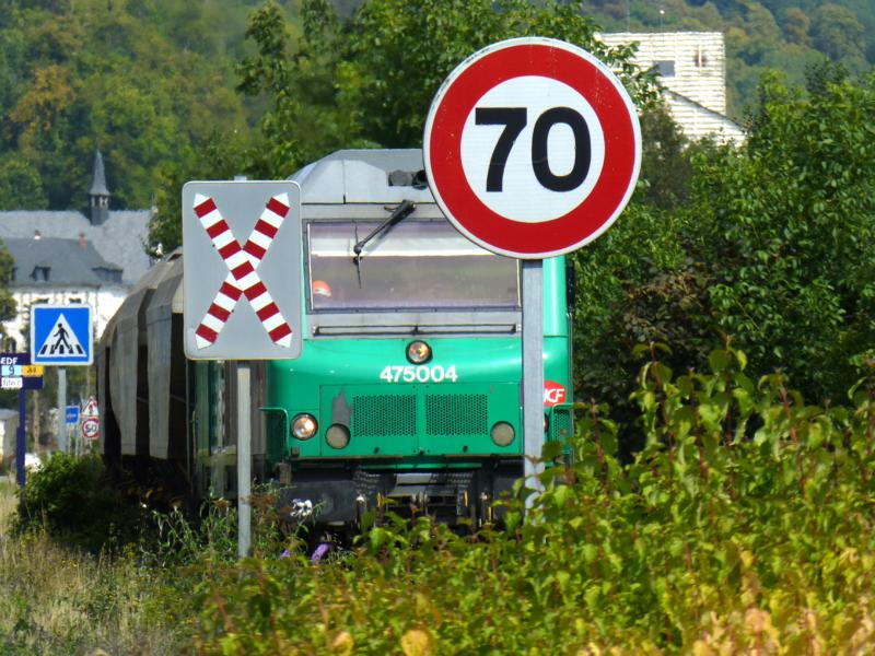 Zuerst werden die Waggons aus dem Verladegelände herausgezogen. Nach dem Umsetzen der Loks ans andere Zugende setzt sich der Zug mit den Waggons langsam und parallel zur Straße in Bewegung. Er passiert gemütlich eine imposante Gleisanlage bei Croisset. Zu besten Eisenbahnzeiten konnte hier sicherlich sehr viel Bewegung beobachtet werden. Zum Zeitpunkt meines Besuches war wenig los, einige abgestellte Güterwagen standen herum, einige wurden vor Ort repariert.