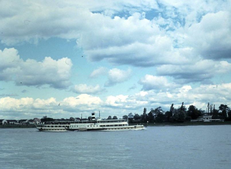 Schaufelraddampfer der Köln Düsseldorfer vor Bonn Beuel in den 1960er Jahren.
