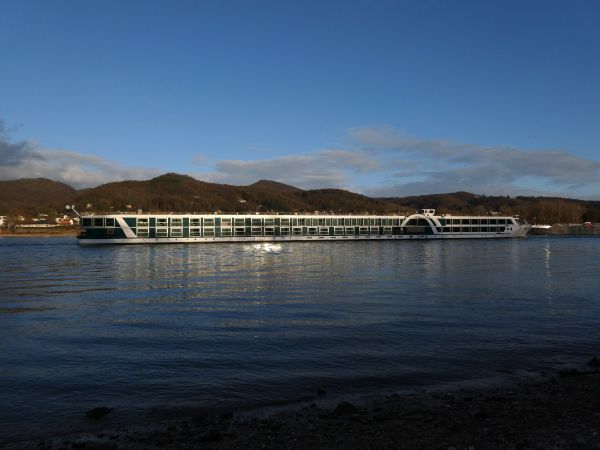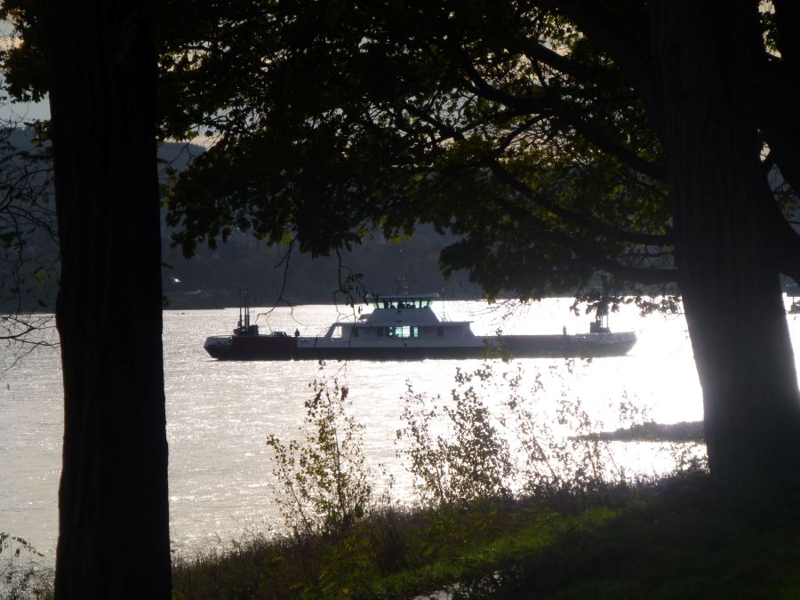 Passagierschiff Moby Dick am 21. November 2019 zu Berg vor dem Oberkasseler Steinbruch. Hier seine Geschichte.