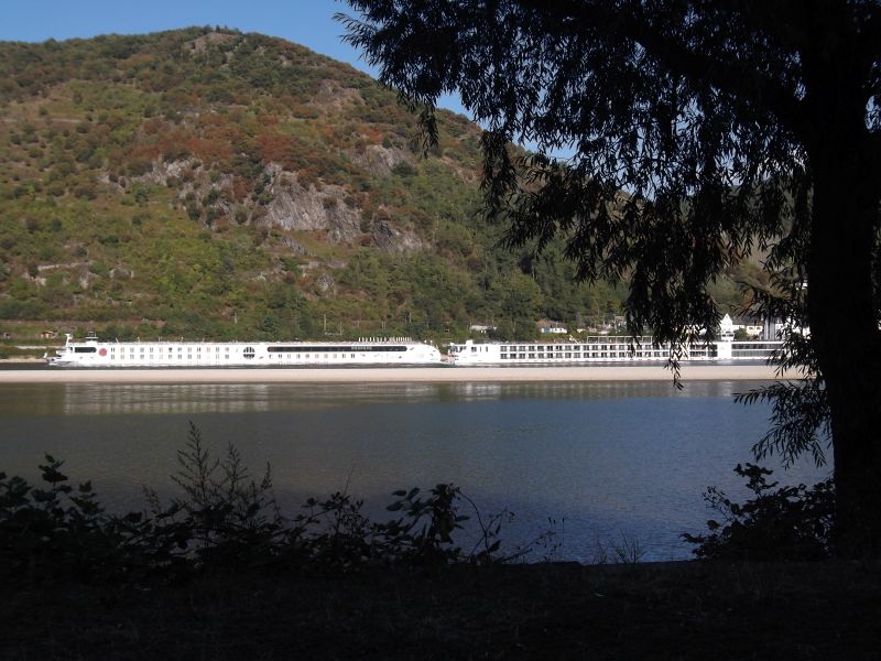 Begegnung zweier Kabinenschiffe vor St. Goarshausen
