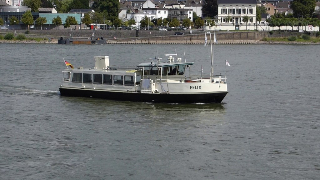 Die Personenfähre Felix, ansässig in St. Goarshausen fährt „Peronen-Ersatzverkehr“ für die auf der Werft liegende Autofähre Königswinter IV im August 2023 vor Bonn-Mehlem.