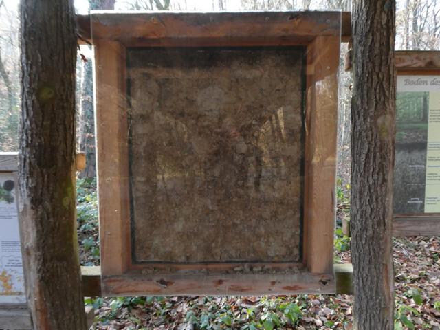 Ein Stückchen weiter können wir in den Laubtunnel eintreten, der uns einiges darüber erzählt, wie aus dem Waldlaub ein fruchtbarer Boden wird.