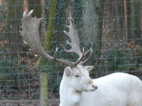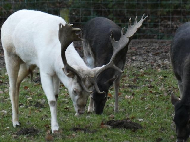 Vor dem Gatter schlagen wir den rechten Weg ein, dann die nächste Möglichkeit wieder links. Das nächste Gatter ist erheblich belebter. Ein weißer Bock war gerade sehr bockig und machte einer Dame Avancen.