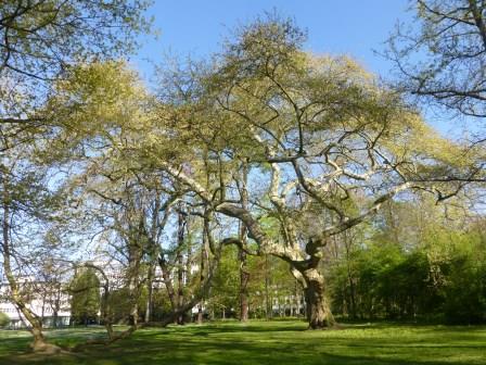 Wir können uns frei durch einen Park mit uraltem Baumbestand bewegen.