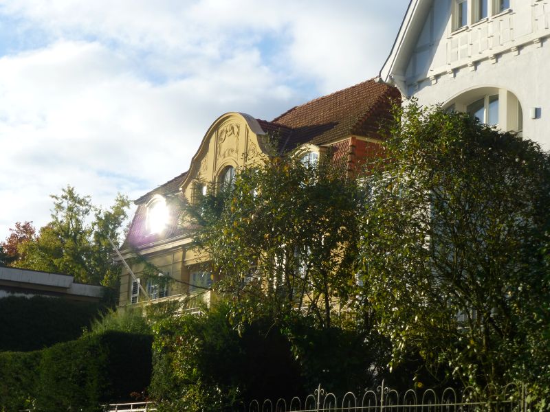 Weiter des Weges betrachten wir die rechtsstehenden Villen aus alter Zeit. Leider finden wir dazwischen immer wieder einige Bausünden der neueren Zeit, teilweise mit geschmacklich denkwürdigem Schnickschnack.