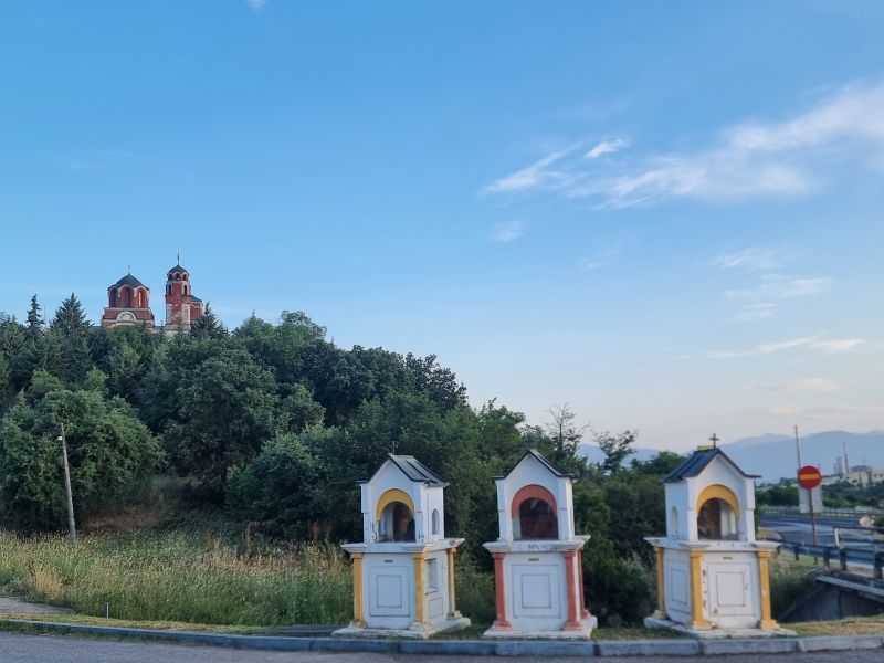Am Wegesrand begleiten uns diverse Heiligenhäuschen oder Bildstöcke, orthodoxe Kirchen und Moscheen setzen der Landschaft ihren Stempel auf. Wir tanken noch schnell in Nord-Mazedonien, weil hier das Benzin billiger scheint als in Serbien, und schon kommt die serbische Grenze in Sicht, die wir nach der Kontrolle – übrigens brauchen wir hier keine grüne Versicherungskarte – recht schnell passieren können